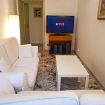 L'immobile può ospitare fino a 8 persone grazie alle sue 3 spaziose camere da letto finemente arredate ( 2 camere matrimoniali e una camera tripla/quadrupla). Completano la casa una cucina abitabile accessoriata (Frigorifero, Freezer, 4 fuochi, macchina del caffè Nespresso, forno , bollitore, TV-Netflix), un comodo ingresso e due ampi bagni, uno dotato di una grande vasca idromassaggio angolare e l'altro con una doccia sensoriale che renderanno il vostro soggiorno ancora più confortevole.